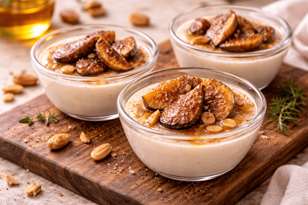 Caramelized Fig and Almond Milk Pudding (Southern Spain Inspired) is a smooth, dairy-free dessert made with almond milk and topped with gently caramelized fresh figs. It is light, mildly sweet, and full of natural Mediterranean flavor. This pudding reflects southern Spain’s love for almonds, figs, and simple seasonal ingredients.