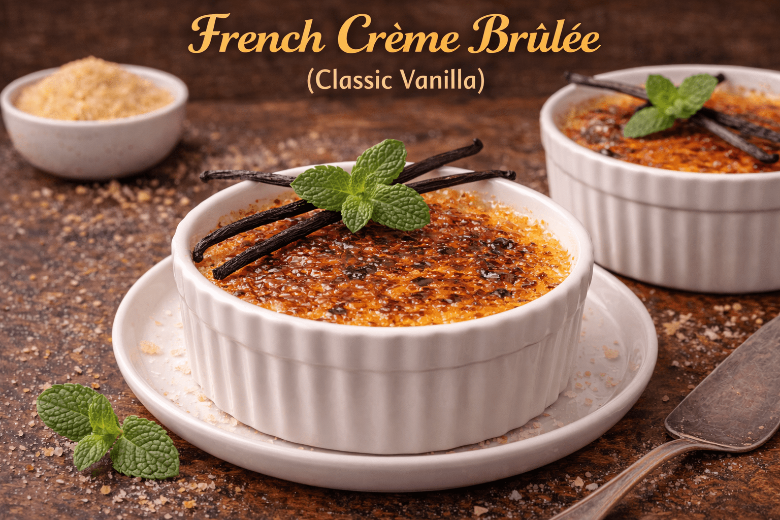French Crème Brûlée (Classic Vanilla) is a timeless dessert known for its silky custard and crisp caramel top. It requires careful preparation but uses simple ingredients.